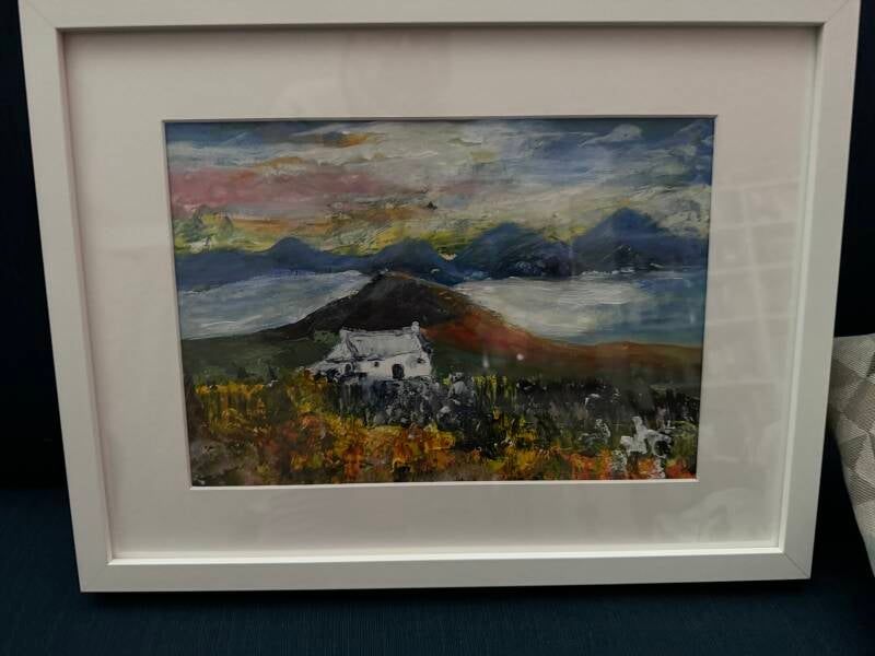"The bothy". Mounted & framed. Acrylics. Original for sale £160.00 ©Peta Butcher 2023