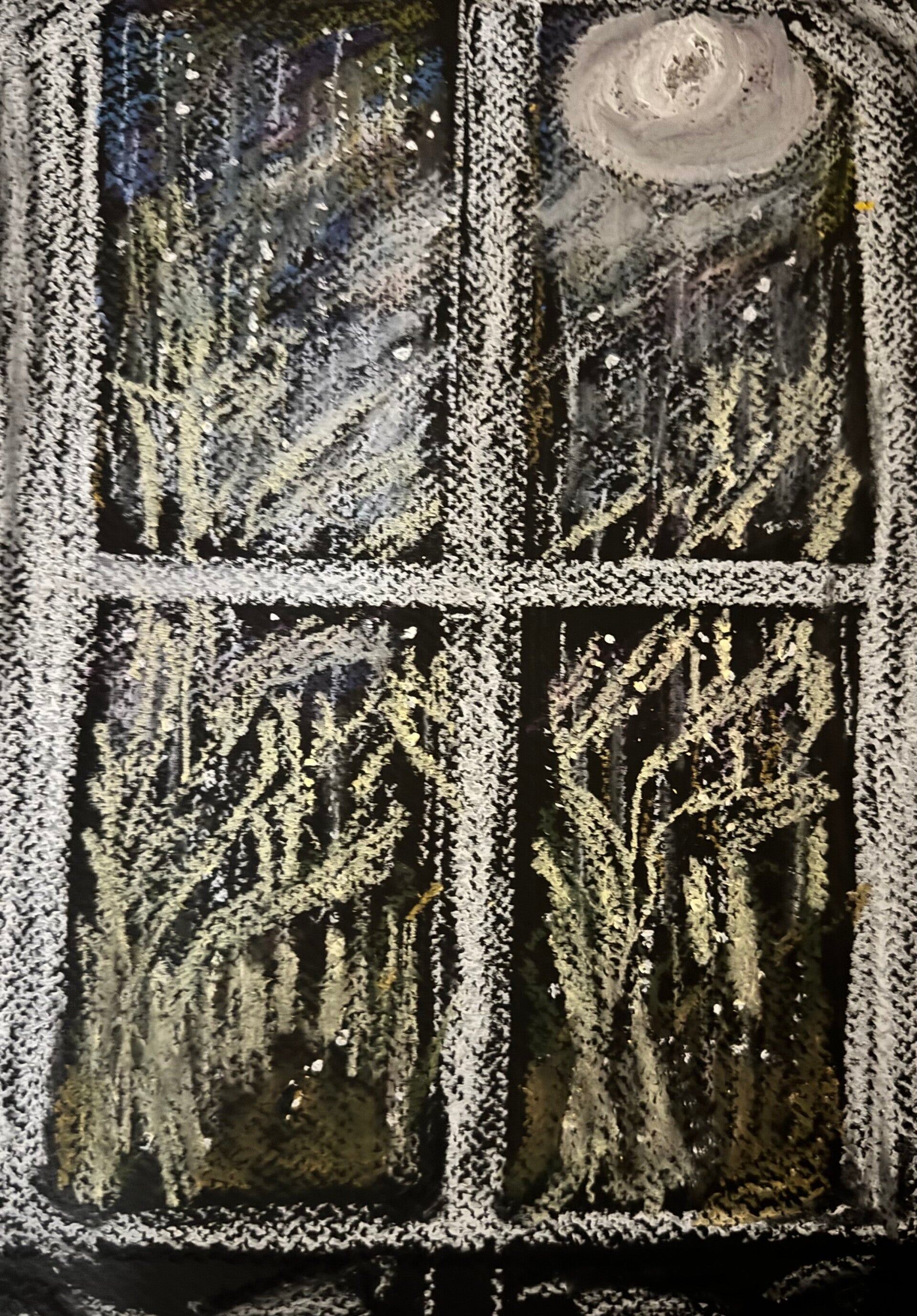 Will it ever stop? A study in transparency and raindrops. Framed original.
